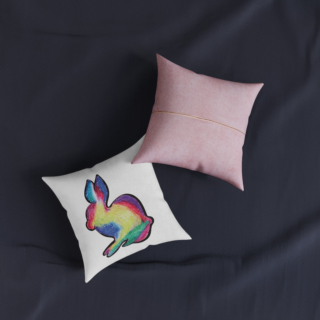 Grab yourself one of these fun bunny cushions. Made with soft, cruelty-free faux suede for a luxuriously soft feeling, these pillows come with a pink back for an extra touch of personality.